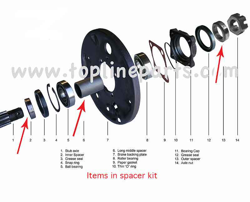 If you are doing a complete rebuild of your rear suspension, including the stub axles, you might consider replacing the stock VW spacers inside the axle housings. This six piece set is made of high carbon steel, and is tougher than the original VW spacers. Highly recommended for wider than stock wheels, or off road abuse.