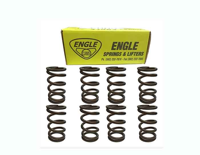 These genuine Engle single high performance valve springs will give reliable performance for engines revving up to about 6,000 RPMs. Use with camshafts up to around .450″ lift. Set of eight.