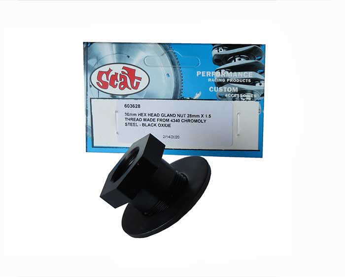 This nice quality gland nut is made from 4340 chrome moly steel. A heavy duty flat washer is also included to help stabilize your flywheel. 36mm socket size.