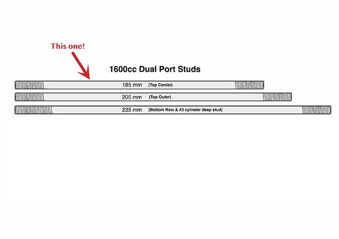 Most VW mechanics have a huge bin of 10mm head studs. However, when converting an engine from single to dual port heads, you need shorter studs for the top two in the center. Previously unavailable, we have found these nice quality 10mm X 185mm long studs to help make up sets from your used inventory. Set of four.