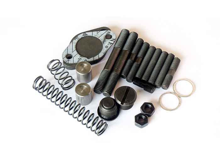 This kit give you pretty much everything you need if you’ve bought a brand new engine case, but don’t have hardware from your old one to transfer over. Included in every kit are the correct stock oil pressure relief springs and pistons. (We don’t recommend the stiffer high performance ones.) You also get engine mount studs, dipstick block-off plate, fuel pump studs and miscellaneous gaskets.