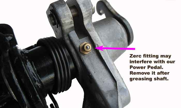This brand new pedal assembly can sure a number of ills. Its common for the late model clutch pedal to break off the shaft after years of use, and this replacement has a sturdy new weld. Also, it’s nice to have the new clutch puller hook that’s included. If you plan to use this assembly with our Power Pedal, you should remove the pedal stop that is part of the aluminum casting for full travel. Also, the Zerk fitting that is installed may hit the operating lever of the Power Pedal. We recommending removing it after greasing the assembly. Made in China.