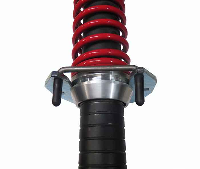 Due to popular demand, we now have availability of a spring compressor specifically designed for our MaXX struts! The aluminum spring holders of our MaXX kits have been redesigned with a radial groove, making a place for the compressors steel plate to engage. These spring holders have been shipping since about April 10, 2016. Please see photos if you have any question about the application. These spring compressors allow compression of the strut spring on or off the car, allowing you to change ride height without removal of the strut from the car. The change can be accomplished without damage or marring of the aluminum spring holders. Made in USA! NOT FOR USE WITH MAXX KIT SUPPLIED BEFORE APRIL 10, 2016.