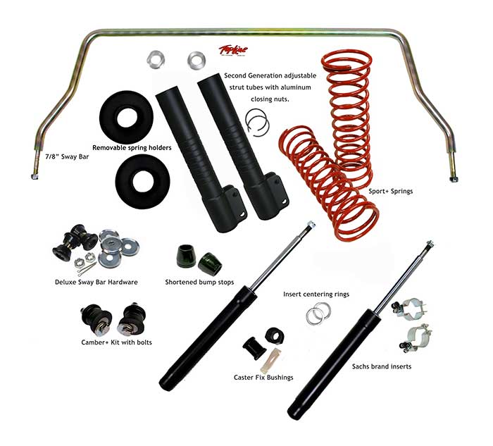 We’re often asked, “what else might i need in addition to the Super Low Kit to do a nice job on my car?” Well, this is it! Our most popular additions and enhancements to make your car ride and handle the best that it can. Over and above the Super Low items you get: Sport+ Springs, Caster-Fix Kit, Pre-shortened urethane Bump Stops, Brake Line Clamp Kits, and Deluxe Sway Bar Mounting hardware. This kit DOES NOT INCLUDE tie rods, tie rod ends, or ball joints. You can lower your 74-79 super up to three inches with this kit. Try one of these great kits today!