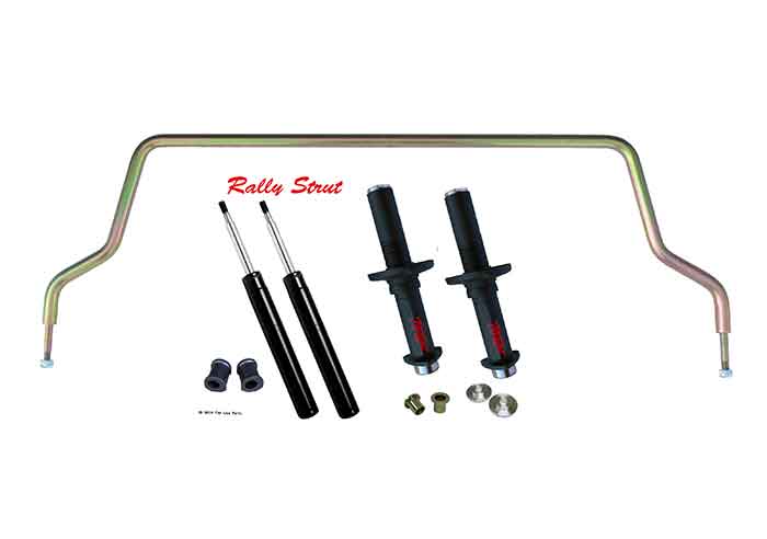 The Rally kit is all new for 2022! Many of our conservative customers have asked for a strut system the can not only lower the car, but also be capable of adjusting all the way up to stock height. Now it is available! Our most popular additions and enhancements are included to make your car ride and handle the best that it can. You get: extended travel Rally strut housings and strut inserts, Caster-Fix Bushing Kit, Flip-It bump steer kit, pre-shortened urethane Bump Stops, a 7/8″ USA made sway bar, and a Brake Line Clamp Kit. You can lower up to four inches with this kit (not recommended for daily driving.) This kit DOES NOT INCLUDE tie rods, tie rod ends, or ball joints. Try one of these great kits today!