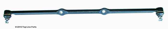The center tie rod is sometimes also called a “drag link.” The tie rod comes ready to install with permanent swiveling ends. The end pieces appear much like tie rod ends, but are quite different. Instead of a “wiggly” stud on a typical tie rod end, the ends of a drag link are merely rotating shafts. This rods job is to transfer motion from the drop arm (pitman arm) on the steering shaft to the other two conventional tie rods. The other end of the rod is connected to an “idler arm assembly” which supports it and makes steering possible. If the ends of your center tie rods have visual movement, it’s time to replace the unit.